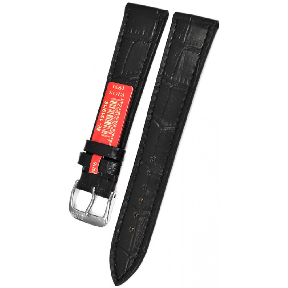 • Матовый тонкий ремешок из натуральной телячьей кожи с тиснением под аллигатора, без набивки.